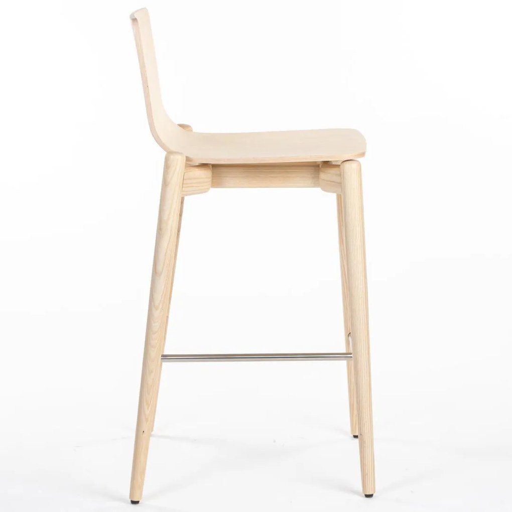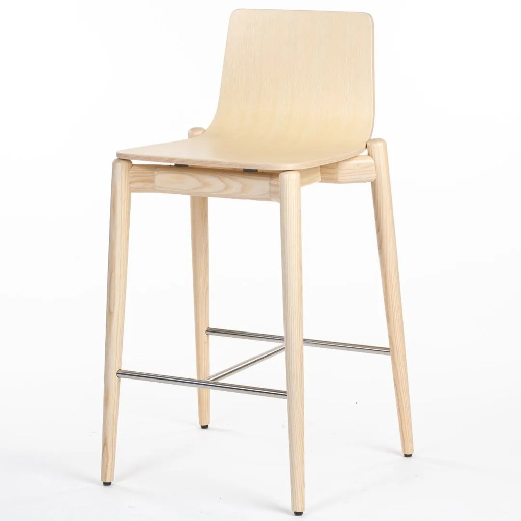 Elegantná barová drevená stolička z jaseňového masívu. Nohy stoličky sú doplnené zosilnenými filcovými klzákmi, proti oderu podlahových povrchov. Stolička, ktorá predstavuje spojenie jednoduchosti a nekompromisnej kvality. Každá stolička má ergonomicky tvarované sedadlo. Je vytvorená s ohľadom na vaše potreby pre akýkoľvek priestor, od vašej domácnosti po vašu gastronomickú prevádzku. Stolička môže byť lakovaná v rôznych povrchových úpravách a farbách: