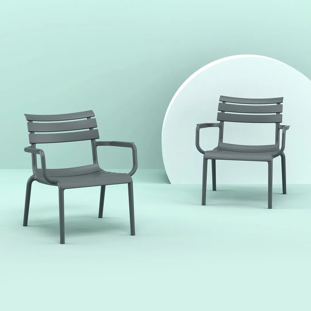 Kreslo Paris Lounge je stohovateľné a vyrába sa jediným vstrekom z polypropylénu vystuženého skleneným vláknom. Je určené pre vnútorné aj vonkajšie použitie. Jeho výhodou sú protišmykové nožičky. Výška sedu je 40 cm.