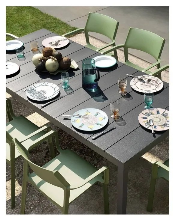 Minimalistický záhradný stôl RIO dizajnovo dotvorí akúkoľvek terasu, ktorej dodá akcent modernosti. Exteriérový stôl je perfektnou voľbou pre rodinné posedenia, ale rovnako sa skvele hodí i do reštauračných prevádzok či bistier. Stôl je vyrobený z pevného lakovaného hliníka, jeho minimalistický dizajn spočíva v čistých líniách, vďaka čomu skvele zapadne do akéhokoľvek štýlu. Tento stôl sa vyznačuje svojou odolnosťou, vďaka čomu predstavuje perfektné riešenie i do vyťažených prevádzok reštaurácií. V antracitovom prevedení tohto produktu môže dôjsť vplyvom priameho slnečného žiarenia k zmene odtieňa.