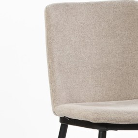 Elegantná stolička v modernom prevedení. Sedacia časť s opierkou sú očalúnené v príjemnej látke pieskovo šedej farby. Exkluzívny dizajn dodávajú stoličke kovové nožičky v čiernej farbe so zlatým detailom. Pevná stabilná podnož a tvarovaná opierka vám zaručia pohodlné sedenie aj počas dlhých rodinných posedení.