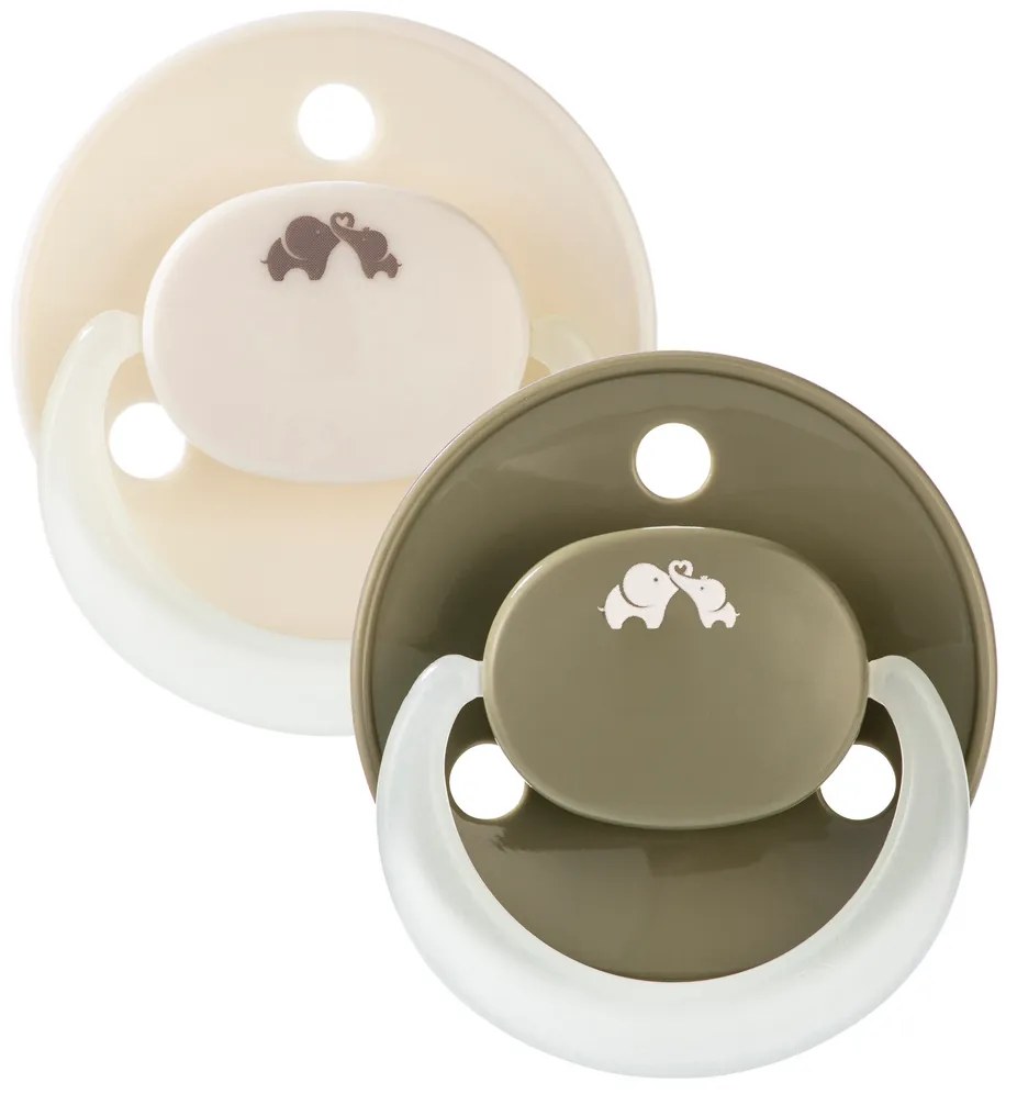 Cumlík so symetrickým cumlíkom z mäkkého silikónu. Vonkajšia časť cumlíka má otvory na cirkuláciu vzduchu, aby nedošlo k podráždeniu citlivej pokožky okolo úst. Krúžok cumlíka v tme svetielkuje, takže ho ľahko nájdete aj v noci v postieľke. Balenie obsahuje 2 kusy. Vhodné pre deti od narodenia. Neobsahuje BPA.