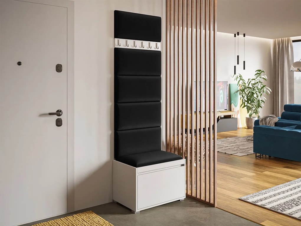 Nábytok do predsiene Konkor 60 + 6 kusov čalúnených nástenných panelov Pag 60x30, Farby: biela, Farba čalúnenia:: ekokoža Soft 011 (čierna)