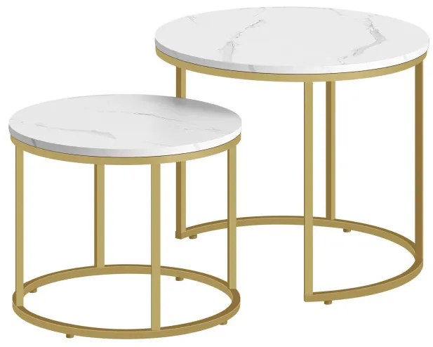 Súprava 2 okrúhlych konferenčných stolíkov DUET, mramor/zlaté nohy