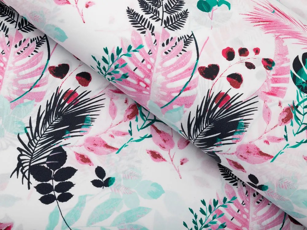 Bavlnený oválny dekoračný obrus na stôl so vzorom ružových a zelených tropických listov na bielom podklade. Je ušitý z husto tkaného 100% bavlneného plátna s certifikátom zdravotnej nezávadnosti Oeko-Tex 100. Obrus dodávame kompletne obšitý. Dekoračné obrusy Sandra sú praktickým doplnkom interiéru Vášho domu, bytu, chalupy a sú vhodné aj do hotelov a reštaurácií. Ako správne zvoliť rozmer obrusu? Uvedené rozmery sú rozmery obrusu, nie stola. Bežný doporučený presah obrusu je cca 20-30 cm na každú stranu stola, tzn. ak máte stôl s rozmerom napr. 60x100 cm, objednávajte obrus s rozmerom 100x140 cm až 120x160 cm, vždy však s prihliadnutím na vlastné individuálne požiadavky. Šijeme v našich krajčírskych dielňach v ČR, ponúkame aj rozmery na mieru.