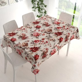 Biante Bavlnený obdĺžnikový obrus Sandra SA-399 Červené pivonky na pieskovom 140x200 cm