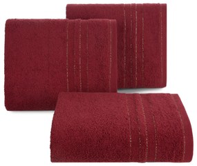 Uterák s bordúrou zdobený lesklou niťou, šírka: 30 cm, dĺžka: 50 cm, farba: bordová, gramáž: 500 GSM, zloženie: 100% bavlna; ozdobná časť: 95% bavlna, 5% polyester.