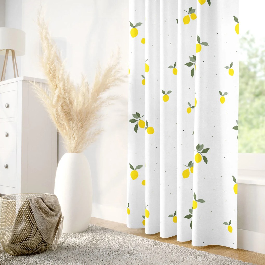 Bavlnený záves so sviežim motívom citrónov s bodkami na bielom podklade. Tento záves šijeme z bavlneného plátna - Citróny o gramáži 145g/m2. Ide o husto tkané plátno zložené zo 100% bavlny. Záves má kvalitný jednostranný potlač a je výhradne určený na dekoračné účely (miestnosť zatieni, ale nezatemní). Záves s našitou riasiacou stuhou Záves dodávame kompletne obšitý vrátane našitej univerzálnej riasiacej stuhy (šírka 5 cm), vďaka ktorej môžete záves zavesiť na štipce aj na háčiky. Uvedená cena je za 1ks závesu. Pokiaľ chcete mať rovnaké závesy z každej strany (ako vidíte na obrázku), je nutné zadať 2ks. Neviete si rady a potrebujete odborne poradiť? Napíšte nám! Ak si neviete s niečím rady a potrebujete s objednávkou bavlneného závesu poradiť, neváhajte sa na nás obrátiť a kontaktujte našich odborníkov e-mailom na info@goldea.sk.