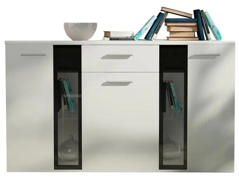 Štýlová komoda je určite dekoratívnym prvkom každej miestnosti. Okrem krásneho vzhľadu je tiež veľmi praktická a umožňuje pohodlné skladovanie veľkého množstva predmetov. Zakryté časti poskytujú príležitosť ukryť predmety, ktoré nechceme ukazovať, zatiaľ čo presklené fragmenty umožňujú vystaviť knihy a iné dekoratívne predmety. Komoda bola vyrobená z laminovanej drevotrieskovej dosky, ktorá je odolná voči poškriabaniu. Na ohranovanie nábytku bola čiastočne použitá PVC hranovacia páska. V kombinácii s iným nábytkom môže vytvoriť jedinečné zariadenie vo všetkých izbách.