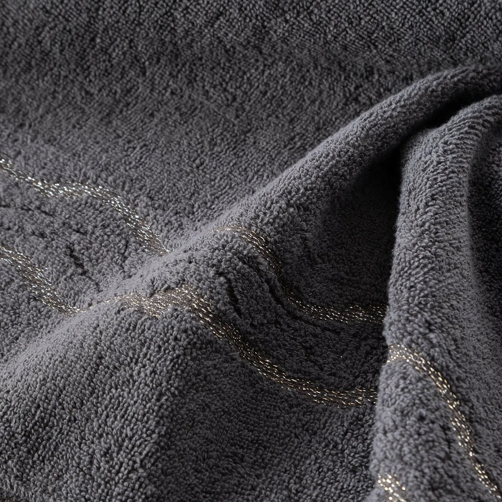 Uterák s ozdobným okrajom a lesklou niťou, šírka: 50 cm, dĺžka: 90 cm, farba: tmavosivá, hmotnosť: 500 GSM, zloženie: 100% bavlna; ozdobná časť: 50% polyester, 50% viskóza.