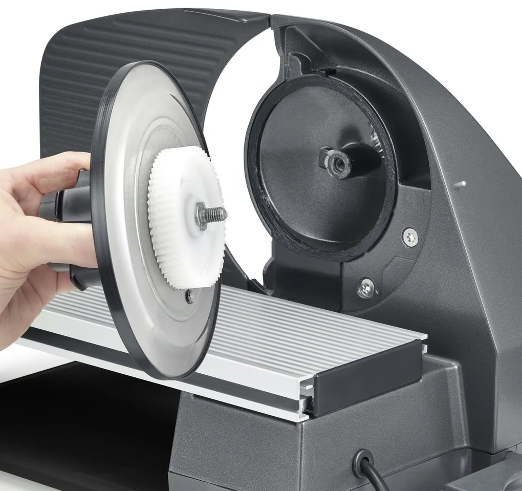Tento elektrický krájač Graef M 95 ocení každý kuchár. Hodí sa na zeleninu, chleba, údeniny a syry. Vyrobený z kvalitného materiálu, ako je plast, oceľ a zliatina. Je vhodný aj do reštaurácie či mäsiarstva, pretože zvládne veľké objemy potravín a dlhodobé používanie.Oceľ sa vyznačuje vysokou odolnosťou a nenáročnou údržbou. Plastové časti zaisťujú nízku hmotnosť a jednoduchú manipuláciu. Keď použijete elektrický krájač na zeleninu, vytvoríte nádhernú oblohu k hlavnému jedlu. Krájač zjednodušuje prípravu tenkých, rovnomerných plátkov obľúbených potravín. Tiež pomáha rýchlo a jednoducho nakrájať plátky čerstvého pečiva.Veľkosť kotúča: pr. 170 mm. Nastaviteľná hrúbka krájania: 0 – 20 mm.