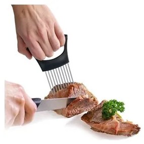 Toto kvalitné držadlo na ovocie a zeleninu je vynikajúce pre ľahké a bezpečné krájanie nielen cibule ale napríklad aj mäsa. Držiak s 10 ostrými hrotmi je vyrobený z prvotriednej nehrdzavejúcej ocele a odolného plastu bez BPA. Vhodné do umývačky riadu.