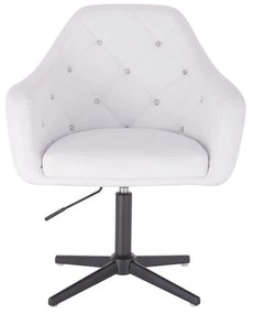Kreslo ROMA na čiernom kríži Kreslo je vhodné pre salóny krásy, kaderníctva, modernej kuchyne, reštaurácie, bary, elegantné kancelárie, exkluzívne obchody, stánky na veľtrhoch, informačné miesta. Čalúnenie - prešívaná syntetická koža, ľahko sa čistí. Prešívaná opierka je zdobená kryštálmi. - Výškové nastavenie - pneumatické - Otočné sedadlo (360 stupňov) - Stabilná kovová základňa Rozmery sedadla na obrázku - Výška sedadla od zeme min. - 40 cm - Výška sedadla od zeme max. - 50 cm Nosnosť 120 kg