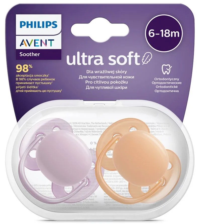 Postarajte sa o citlivú pokožku s cumlíkom Philips Avent Ultrasoft. Náš mimoriadne mäkký a pružný kotúč kopíruje krivky tváre dieťaťa, takže zanecháva menej otlakov a menej podráždenia pokožky.Vlastnosti:- Jedinečný mäkký a flexibilný disk- Jedinečný mäkký a flexibilný disk- Zaoblený disk- Dá sa sterilizovať a uchovávať v praktickom vrecku- Pohodlná sterilizácia za 3 minúty- Pohodlný cumlík z mäkkého a hebkého materiálu- Cumlík vyrobený zo 100 % silikónu bezpečného pre potraviny- Prirodzený vývoj ústnej dutiny- Dieťa sa cíti prirodzene- Zaručená kvalitaSterilizuje sa do 3 minútCestovné puzdro dodávané s cumlíkmi Ultrasoft a Ultra Air slúži aj ako sterilizátor. Stačí pridať trochu vody a vložiť ho do mikrovlnnej rúry. Môžete si byť istí, že cumlík bude pred ďalším použitím čistý.Barva: Podľa obrázkuVelikost: 6-18 m