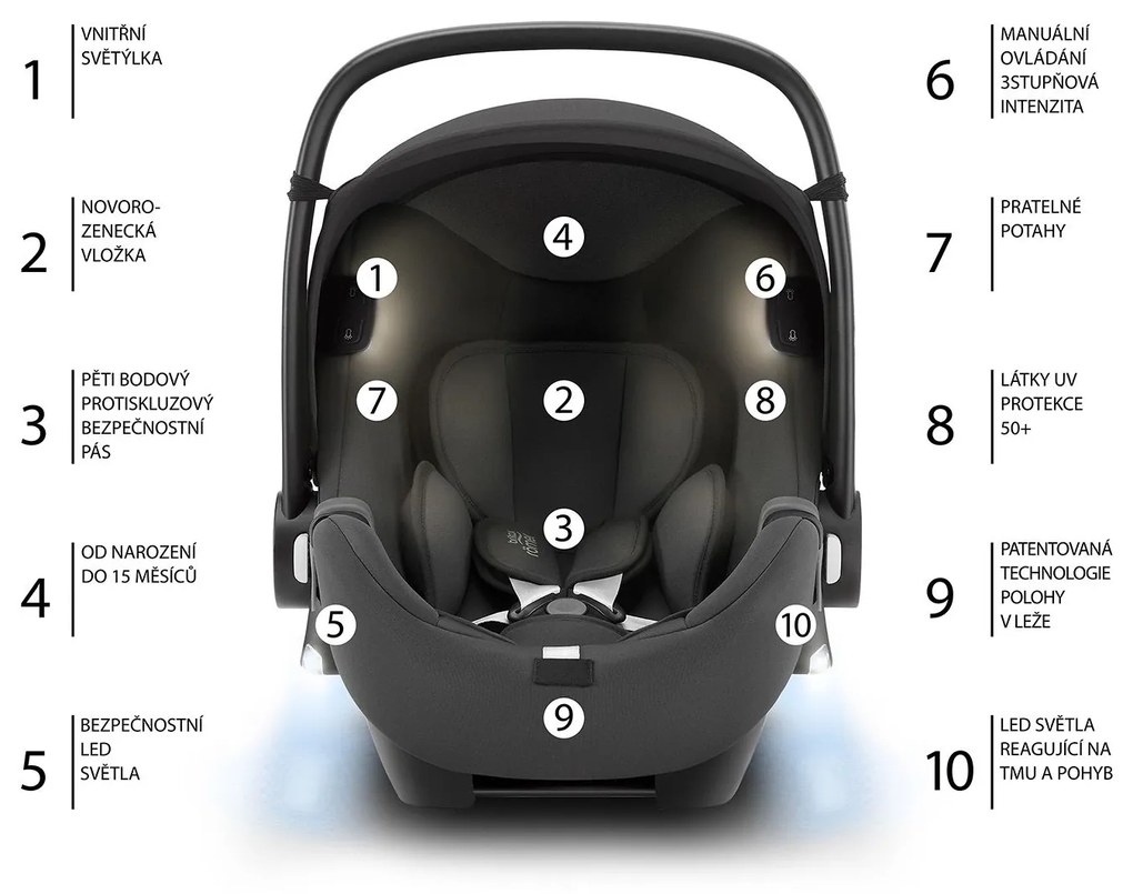 Autosedačka Baby-Safe iSense Autosedačka Baby-Safe iSense je najinteligentnejšie riešenie pre vaše pohodlné a bezpečné cestovanie. Pre deti od narodenia do 15 mesiacov.To sa ešte nikdy nepodarilo! Inteligentný rad iSence na scéne! Spoločnosť Britax Römer vyvíja a vyrába detské autosedačky od roku 1966. Patrí k svetovej špičke v oblasti bezpečnosti. Teraz vám prinášajú nový, jedinečný cestovný systém iSense, ktorý spĺňa požiadavky na ešte väčšiu bezpečnosť, pohodlnejšiu manipuláciu a zábavnejšie cestovanie s deťmi, než ste si kedy predstavovali! Modulárny systém iSense = ostrov bezpečia pre vaše detiAutosedačka Baby-Safe iSense spĺňa bezpečnostnú normu i-Size a môže sa používať pre deti od narodenia do 15 mesiacov. Systém iSense ponúka niekoľko pokročilých funkcií. Jedným z nich je kompatibilita vajíčka s podvozkami takmer všetkých dostupných kočíkov. A potom je tu 180° otočenie v kombinácii s polohovaním. Kombinácia otáčania a polohovania vajec je úplne jedinečná. V neposlednom rade sa rad iSense môže pochváliť revolučnou novinkou, ktorou je súbor inteligentných svetiel na zvýšenie vášho pohodlia a bezpečnosti. Pre šťastné a zdravé dieťaAutosedačka Baby-Safe iSense sa v aute upevňuje buď pomocou bezpečnostných pásov vozidla, alebo ideálne pomocou základne Flex iSense. Vzhľadom na požiadavku prepravovať deti do 15 mesiacov v polohe proti smeru jazdy je autosedačka vybavená bezpečnostným zámkom, ktorý umožňuje otočenie autosedačky len o 180° do a z nástupnej polohy. Základňa tiež umožňuje jednoduché sklopenie sedadla do 6 rôznych polôh vrátane polohy v ľahu. To zabraňuje pádu hlavy dieťaťa, keď nie je sedadlo v niektorých autách správne naklonené. Táto kombinácia otáčania a sklápania je v modeli Egg úplne jedinečná.V autosedačke Baby-Safe iSense zaistíte svojmu dieťaťu nielen maximálnu bezpečnosť, ale aj útulné a pohodlné prostredie. Jeho patentovaný mechanizmus umožňuje nastaviť ergonomickú polohu podľa výšky dieťaťa. To podporuje zdravý vývoj. Keď dieťa vyrastie, môžete priestor v sedačke zväčšiť nastavením opierky hlavy. V neposlednom rade k pohodlnému sedeniu prispeje aj mäkko polstrovaná novorodenecká vložka a prémiové poťahy z mäkšej látky ako predtým.Inteligentné riešenia pre bezpečné a pohodlné cestovanie Matky na cestách často používajú auto v kombinácii s kočíkom. Preto je dobrou správou, že autosedačku Baby Safe iSense možno pomocou adaptérov pripojiť k takmer všetkým typom podvozkov. To umožňuje rodičom nebývalú slobodu výberu. Pohybovať sa s kočíkom-vajíčkom v cestnej premávke je často nebezpečné, najmä za zhoršených svetelných podmienok. Preto je detská autosedačka Baby Safe iSense vybavená súpravou inteligentných LED svetiel. Dvojica týchto bezpečnostných a inštalačných svetiel sa automaticky aktivuje, ak prenášate nosič v tmavom prostredí. Na prechádzke, na výlete alebo na parkovisku sa môžete bez obáv pohybovať aj večer, v šere a v tme. Funguje to tak, že keď sa sedačka odpojí od základne, spodný pár svetiel sa automaticky zapne a zostane svietiť aj po pripojení sedačky k podvozku kočíka. Vďaka tomu vidíte dobre už z diaľky a vidíte aj na cestu. Keď sa s vajíčkom dostanete do osvetlenej oblasti, svetlá na sedadle sa automaticky vypnú. Slúži to aj ako spoľahlivý indikátor, že vajíčko je bezpečne pripevnené k základni, pretože svetlá sa v tomto okamihu automaticky vypnú. Jasné osvetlenie LED vás navyše nebude rušiť počas jazdy. Potom je tu ďalší pár svetiel, ktorý má inú funkciu. Teplé, tlmené svetlá vnútri autosedačky zabezpečujú, že vždy vidíte, čo vaše dieťa robí. Svetlá vám tiež pomôžu ľahšie pripútať dieťa v tme auta. Majú nastaviteľný automatický spínač, ktorý zapne svetlá, vy pripútate dieťa do sedačky a svetlá sa po jednej minúte vypnú.Horné a dolné osvetlenie sa dá ovládať aj manuálne z oboch strán. Svetlá možno zapínať a vypínať dlhým stlačením a ich intenzitu možno nastaviť v 3 stupňoch. Pri horných svetlách je to od najtmavšieho po najjasnejšie osvetlenie. Pri nižších svetlách je to naopak. Súčasťou balenia je aj 2m USB kábel, ktorý nabije svetlá približne za 4 hodiny. Po úplnom nabití vydržia svetlá svietiť približne 18 hodín. Inovatívny systém iSense vám tak prináša väčšie pohodlie a nové možnosti pohybu.Funkcie autosedačky Baby Safe iSense v kocke Inteligentný systém pre maximálnu bezpečnosť detí od 0-15 mesiacov/80 cm-Spĺňa bezpečnostnú normu i SizePatentovaná ergonomická poloha na ležanie-Kompatibilný so všetkými kočíkmi s Maxi upevnenímCosi-Inteligentný svetelný systém pre väčšiu bezpečnosť a pohodlie-Svetlá reagujú na tmu a pohyb a možno ich ovládať aj manuálne-3-stupňové ovládanie intenzity svetla-Horné - tlmené svetlá pre dohľad nad dieťaťom a detské aktivity-Dolné - led svetlá majú bezpečnostnú funkciu-Detské-bezpečný iSense je schválený na použitie v leteckej doprave-kryty sa dajú ľahko odstrániť a prať pri 30 °C-obsahuje 2m nabíjací kábel USB-nabíja sa približne 4 hodiny a vydrží svietiť približne 18 hodín-vyrobené v Nemecku