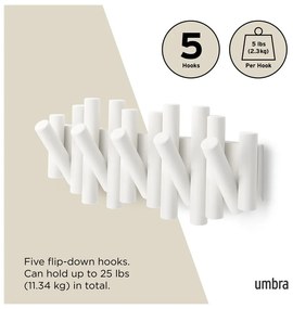 Jednoduchý nástenný vešiak je originálnym kúskom vďaka vyklápacím háčikom, ktoré jednoducho schováte v prípade, že ich práve nepotrebujete.