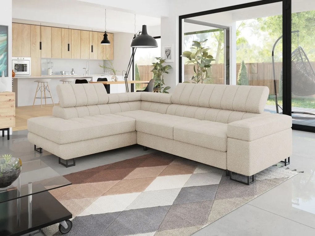 Rohová rozkladacia sedacia súprava s úložným priestorom do tvaru L PRATO ľavá béžová