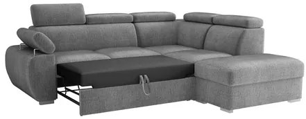 Rozkladacia rohová čalúnená sedacia súprava s úložným priestorom do tvaru L AVESTA pravá sivá