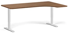 Výškovo nastaviteľný stôl, 180x120 cm, 2 motory, L/P, biela podnož, orech