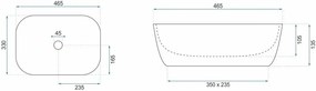 Rea Belinda, umývadlo na dosku 465x330x135 mm, čierna lesklá-zlatá štruktúrovaná, REA-U8780 Technické údaje: Výrobca: Rea Séria: Nadia Typ: na dosku / pultové Materiál: sanitárna keramika Farba: čierna lesklá / zlatá štruktúrovaná Rozmery: 465 x 330 x 135mm Hĺbka umývadla: 105 mm Odtokový otvor: štandardný, 4,5 cm Prepadový otvor: nie Otvor pre batériu: nie