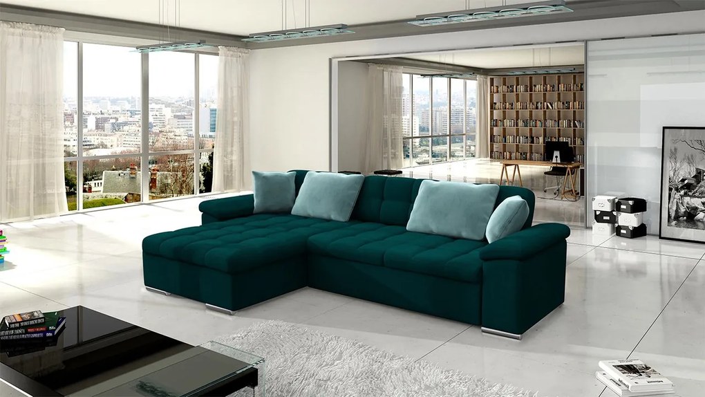 Tmavozelená rozkladacia rohová pohovka ZENA, obojstranná