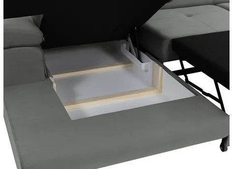 Rozkladacia rohová čalúnená sedacia súprava s úložným priestorom do tvaru L AVESTA pravá sivá