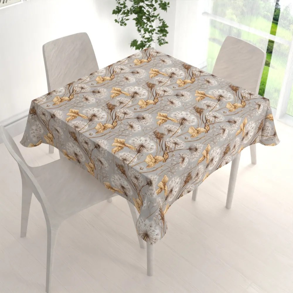 Biante Bavlnený štvorcový obrus Sandra SA-517 Jesenné púpavy na sivom 140x140 cm