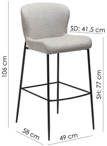 GLAM ČALÚNENÁ BAROVÁ STOLIČKA pebble grey/black
