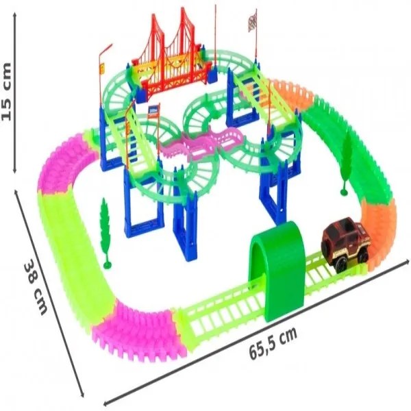 Pokiaľ máte doma milovníka áut bude to pre neho ideálny darček. Na rozdiel od tradičných hračiek tohto typu má naša autodráha unikátny systém spojovacích prvkov, vďakaktorému môžete vytvoriť ľubovoľný tvar a vytvoriť si vlastné slučky a zákruty. Závodná dráha Magic je farebná av tme svietiaca, od ktorej sa vaše dieťa nebude chcieť odtrhnúť!