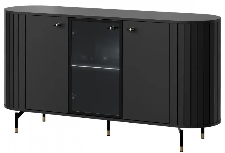 Vitrína Terkiro 150 2D1W TR03, Osvetlenie: osvetlenie LED biele, Farby: čierna
