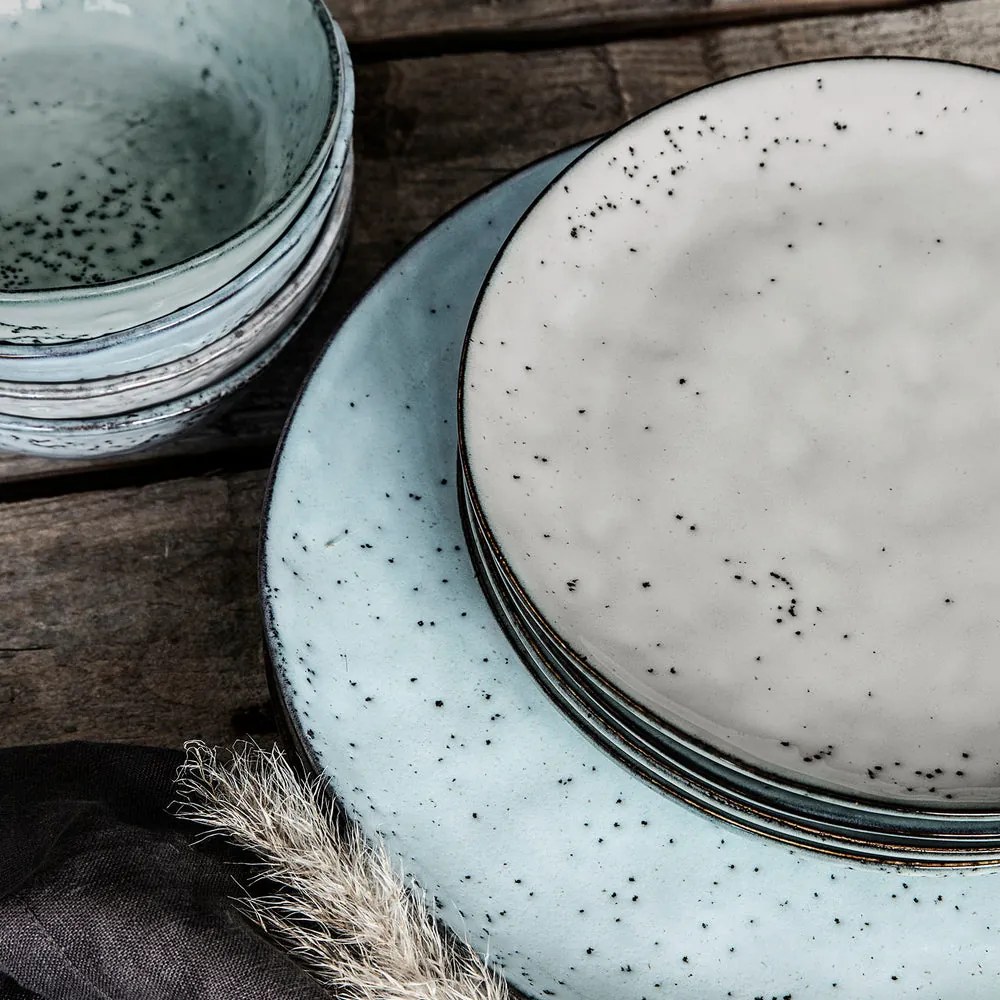 Servírujte svoje jedlá v severskom dizajne. Tanier je ručne vyrobený z keramiky, doplnený rustikálnou glazúrou v šedých a modrých tónoch. Pretože je tanier ručne vyrábaný, môžete sa stretnúť s odchýlkami vo farbe aj tvare. Priemer: 27,5cm