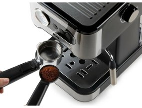 Tento výkonný pákový kávovar je ideálnou voľbou pre milovníkov espressa, cappuccina či latte, ktorí ocenia možnosť prípravy kávových nápojov s intenzívnou chuťou a bohatou mliečnou penou. Vďaka čerpadlu ULKA s tlakom 20 barov zvládne kávovar precíznu extrakciu chutí pre dokonalú šálku kávy. Pákový kávovar je vybavený dvoma vymeniteľnými sitkami pre 1 alebo 2 porcie kávy, čo umožňuje pripraviť dve kávy naraz alebo jednu silnú pre extra pôžitok.Odnímateľná nádržka na vodu s kapacitou 1500 ml a zásobník na odkvapkávajúcu kávu uľahčujú údržbu aj doplňovanie vody. Elektronické ovládanie na nehrdz. paneli, doplnené praktickým tlakomerom, poskytuje presnú kontrolu nad procesom prípravy kávy. Funkcia na nastavenie objemu kávy od 25 do 200 ml umožňuje prispôsobiť šálku vašim potrebám, a vďaka pamäťovej funkcii si môžete uložiť obľúbené nastavenia pre jednoduchú prípravu.Kávovar je tiež vybavený inteligentným termosenzorom PID pre stabilnú reguláciu teploty vody a ochranou proti prehriatiu a pretlakovaniu. V balení nájdete malé aj veľké sitko na kávu a vtláčadlo pre správnu prípravu espressa. Odporúčame dokúpiť mlynček DOMO DO42440KM pre dokonalý pôžitok z čerstvo namletej kávy.Príprava kávy:V pákovom kávovare si ľahko môžete pripraviť 1 až 2 šálky kávy. Najskôr je potrebné namlieť patričné množstvo kávy. Namletie čerstvej kávy vám môže veľmi uľahčiť elektrický kávomlynček. Namletú kávu potom nasypte do nehrdz. sitka pre jednu alebo pre dve porcie kávy a zľahka utlačte priloženým vtláčadlom. Teraz už len vložte páku s kávou do kávovaru, zaistite a spustite požadovaný program prípravy.Pamäťová funkcia:V továrenskom nastavení je prednastavené jedno espresso na 40 ml vody a dvojité espresso na 80 ml vody. Nastavené hodnoty je možné ľahko zmeniť na 25 - 100 ml pre malé espresso a maximálne až 200 ml pre dvojité espresso. Nové nastavenie potom uložíte do pamäte nabudúce. Nastavenie sa vykonáva jednoduchým pridržaním príslušného tlačidla so symbolom espressa po celú dobu prípravy kávy. Akonáhle bude množstvo kávy zodpovedať vami požadovanému, tlačidlo uvoľníte a tým dôjde k uloženiu hodnoty. Nabudúce už tlačidlo len raz stlačíte a kávovar pripraví kávu podľa vášho nastavenia.