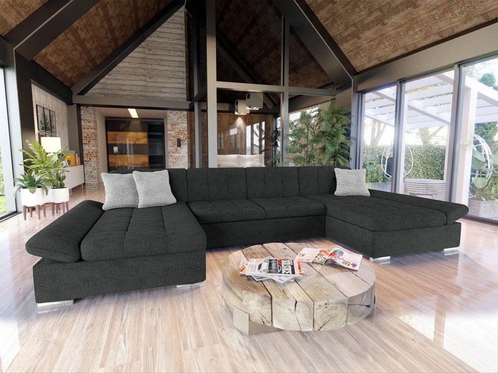 Rozkladacia rohová čalúnená sedacia súprava AVESTA do tvaru U, antracit, s úložným priestorom