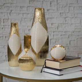 Dekoračná váza šírka: (fi) 12 cm, dĺžka: 23 cm, farba: béžová/zlatá, zloženie: keramická hlina