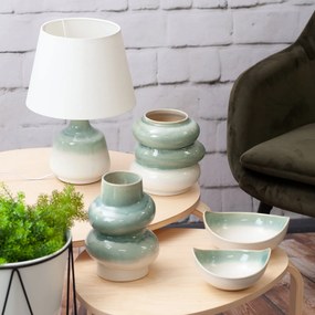 Dekoratívna váza šírka: 21 cm, dĺžka: 19 cm, farba: krémová/zelená, zloženie: keramická hlina.