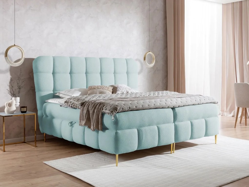 Zariaďujete si spálňu? Kontinentálna posteľ Tiloni je perfektnou voľbou do moderného interiéru. Originálny vzhľad upúta pozornosť každého. Model sa stane nielen pohodlným priestorom na spánok a odpočinok, ale aj ozdobou spálne. Vyznačuje sa jedinečným prešívaním. Celá konštrukcia je postavená na subtílnych, zlatých nožičkách, čo dodáva nábytku prestíž a luxus.Čalúnená posteľ má dva priestranné úložné priestory, ideálne na posteľnú bielizeň, ďalšie prikrývky alebo vankúše. Psst! Je to tiež ideálny priestor na uskladnenie sezónneho oblečenia.Ak ste fanúšikom moderných dizajnových trendov, posteľ Tiloni na nožičkách je pre vás ideálnou voľbou.Dostupné rozmery:120:hĺbka: 208 cm, šírka: 144 cm, výška: 122 cm, plocha na spanie: 120 x 200 cm,rozmery jedného úložného priestoru (posteľ má dva): hĺbka: 197 cm, šírka: 57 cm, výška 25 cm,140:hĺbka: 208 cm, šírka: 164 cm, výška: 122 cm, plocha na spanie: 140 x 200 cm,rozmery jedného úložného priestoru (posteľ má dva): hĺbka: 197 cm, šírka: 67 cm, výška 25 cm,160:hĺbka: 208 cm, šírka: 184 cm, výška: 122 cm, plocha na spanie: 160 x 200 cm,rozmery jedného úložného priestoru (posteľ má dva): hĺbka: 197 cm, šírka: 77 cm, výška 25 cm,180:hĺbka: 208 cm, šírka: 204 cm, výška: 122 cm, plocha na spanie: 180 x 200 cm,rozmery jedného úložného priestoru (posteľ má dva): hĺbka: 197 cm, šírka: 87 cm, výška 25 cmPrevedenie:rám: 16 mm hrubá nábytková doska + borovicové drevo,operadlo: 16 mm hrubá nábytková doska + borovicové drevo + 3 cm hrubá pena T25 + nadýchaná netkaná textília,má dva úložné priestory - na oboch stranách postele, zdvíhanie oboch častí vďaka pružinám, vďaka čomu je obsluha veľmi jednoduchá a ľahká,hlavný matrac: bonellové pružiny + 2 cm hrubá pena T25 + netkaná textília,stupeň tvrdosti hlavného matraca (stredná vrstva postele): H3,úplne hore - vrchná časť matraca (poťah Mandula):stredne tvrdý,hrúbka cca 2 cm,prešívaný poťah,topper vyrobený z najkvalitnejších hypoalergénnych materiálov:antibakteriálny a protiplesňový polyesterový úplet 200 gsm,PU pena: vyznačuje sa vysokým stupňom hustoty, primeranou tvrdosťou a elasticitou, nízkou náchylnosťou na deformáciu, vysokým komfortom používania,vysoko nadýchaná netkaná textília 100 gsm vyrobená z polyesterového vlákna,35 gsm vložka vyrobená z vysoko kvalitnej netkanej textílie,polyesterové mikrovlákno 82 gsm: priedušné, vysoká absorpcia vlhkosti, antialergické, poskytuje bariéru proti prachu a roztočom,topper má 4 odolné upevňovacie gumy, ktoré zabraňujú pohybu matraca,lem: olemovaný páskou po obvode,obojstranné - obe strany tvoria úžitkovú plochu,Matrac sa odporúča otočiť každé 2-3 mesiace,prateľný na 30˚Ckovové nohy zlatej farby, výška 15 cm,posteľ nie je voľne stojaca (chrbát je pokrytý fibertexom)Záruka: 24 mesiacov