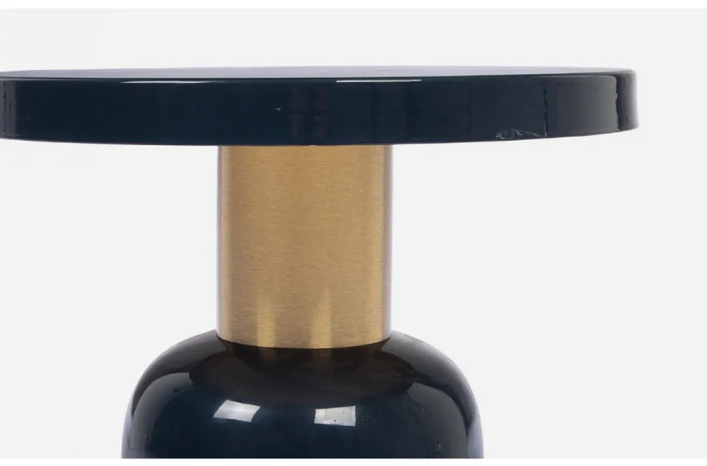 Odkladací stolík s odolného oceľového rámu so smaltovaným povrchom a mosadzným oceľovým ozdobným krúžkom, zlatá farba.
