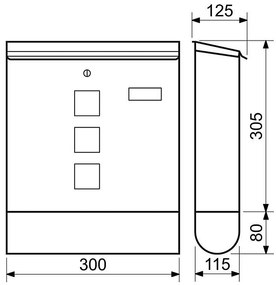 Oceľová schránka s okienkami z číreho plexiskla umožňujúca čiastočný priehľad do jej vnútrajška a tubusom na tlačoviny Rozmer š/v/h: 305 x 390 x 115 mm Rozmer vhodu š/v: 300 x 30 mm Hrúbka materiálu: 0,7 mm Hmotnosť netto: 1,9 kg Balenie vr. mont. materiálu a 2 ks kľúčov Povrch: štruktúrovaný Farba: hnedá matná - HM (RAL8017)