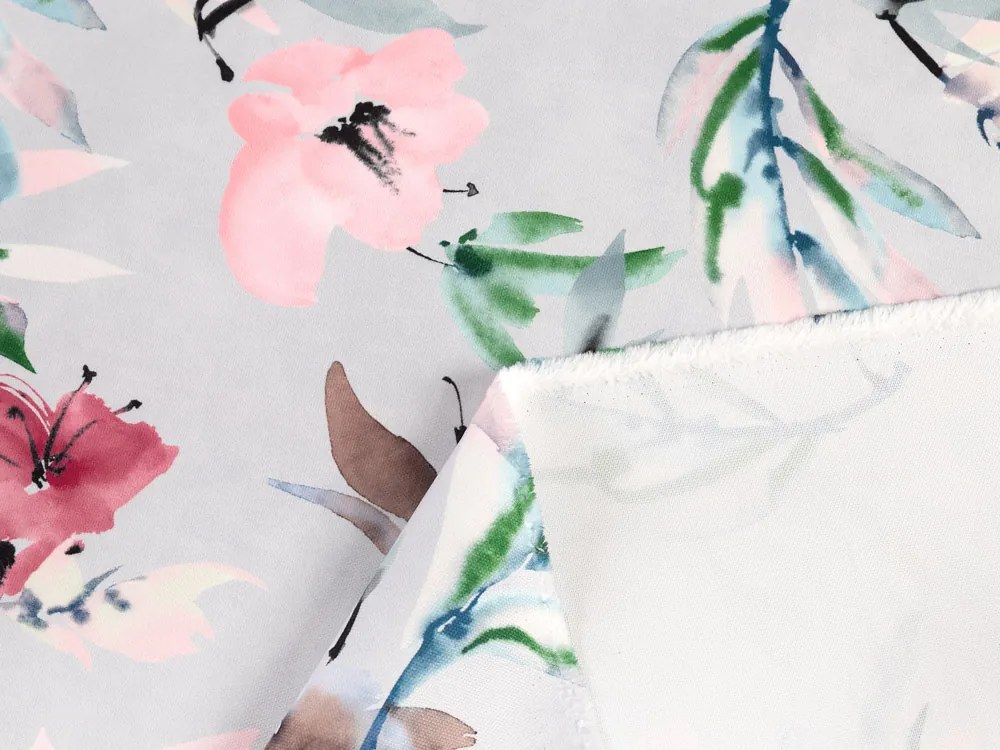 Biante Dekoračný záves PM-110 Akvarelové ružové kvety na svetlo sivom 145x200 cm