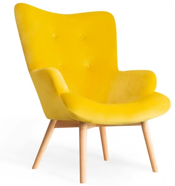 Žlté kreslo MOSS dodá eleganciu každej miestnosti a spríjemní oddych doma. Najlepšie bude vyzerať v interiéroch v klasickom a vintage štýle. Parametre produktu: ▪ Farba:. žltá / hnedá ▪ Materiál:. zamat / drevo ▪ Rozmery produktu:. 70 x 95 cm