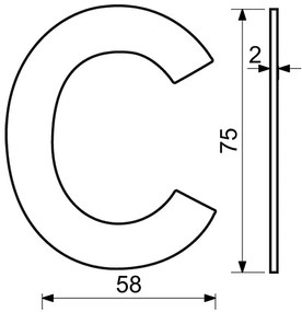 Nerezové písmeno v plochom „2D“ prevedení Výška: 75 mm Montáž lepením pomocou obojstrannej lepiacej pásky „3M“ Vhodné pre stredne hrubé a hladké povrchy Balenie vr.