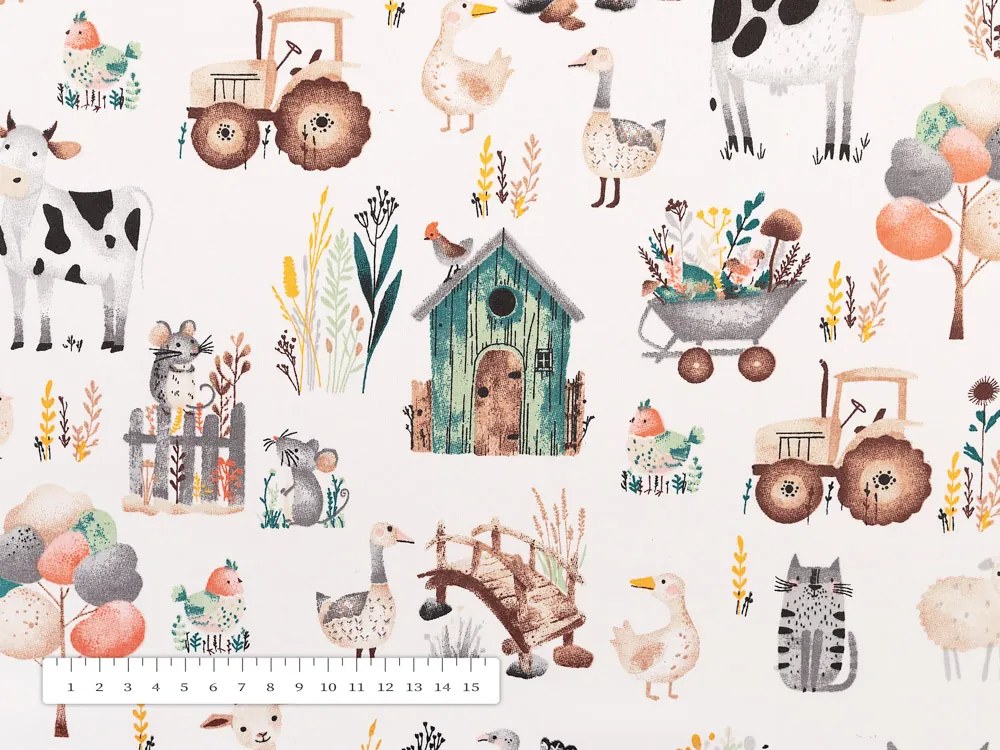 Detský bavlnený štvorcový dekoračný obrus na stôl s milým detským motívom domácich zvieratiek na farme na bielom podklade. Je ušitý z husto tkaného 100% bavlneného plátna s certifikátom zdravotnej nezávadnosti Oeko-Tex 100. Obrus dodávame kompletne obšitý. Dekoračné obrusy Sandra sú praktickým doplnkom interiéru Vášho domu, bytu, chalupy a sú vhodné aj do hotelov a reštaurácií. Ako správne zvoliť rozmer obrusu? Uvedené rozmery sú rozmery obrusu, nie stola. Bežný doporučený presah obrusu je cca 20-30 cm na každú stranu stola, tzn. ak máte stôl s rozmerom napr. 60x60 cm, objednávajte obrus s rozmerom 100x100 cm až 120x120 cm, vždy však s prihliadnutím na vlastné individuálne požiadavky. Šijeme v našich krajčírskych dielňach v ČR, ponúkame aj rozmery na mieru.