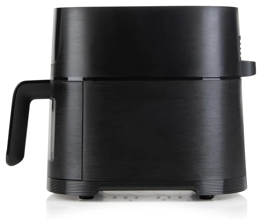 Kompaktný model teplovzdušnej fritézy, ktorý vám nezaberie zbytočne veľa miesta na kuchynskej linke, a napriek tomu zvládne všetko rovnako ako väčšie modely. Fritovacia nádoba praktického hranatého tvaru s objemom 6 litrov pojme až 1,5 kg surovín a vyberateľná mriežka na dne nádoby umožní zachytiť na dne nádoby výpek zo surovín. Priebeh fritovania môžete pohodlne sledovať skleneným priezorom v prednej časti fritézy. Nie je teda potrebné zbytočne fritézu počas fritovania otvárať a vetrať tak naakumulované teplo. Pre ešte lepšiu kontrolu pokrmu disponuje fritéza aj vnútorným osvetlením, ktoré si môžete kedykoľvek zapnúť. Základné parametre fritézy: typ fritézy: teplovzdušná fritéza so skleneným priezorom počet fritovacích košov: 1 objem fritovacieho koša: 6 l hmotnosť surovín: 1,5 kg doba nahriatia na najvyššiu teplotu: 3 minúty Ovládanie fritézy: dotykový LED panel so zobrazením vybraného programu, nastavenej teploty a zostávajúceho času tlačidlo pre spustenie/pozastavenie fritovania zvukový signál potvrdzujúci stlačenie tlačidla nastavenie teploty i času je možné meniť aj počas spusteného programu bez prerušenia 8 prednastavených programov dostupných cez tlačidlá rýchlej voľby Vlastnosti: presný digitálny termostat s nastavením teploty od 80 °C do 220 °C digitálny časovač doby fritovania 1-60 minút pozastavenie fritovania vybratím fritovacej nádoby funkcia "shake" upozorňujúca signálom a nápisom na displeji na dobu vhodnú na otočenie surovín funkcia vyfúkania horúceho vzduchu po skončení programu, alebo pri vypnutí zvukový signál konca programu osvetlenie vnútorného priestoru počas fritovania (stlačením tlačidla) Ostatné užitočné vlastnosti: sklenený priezor fritovacej nádoby vyberateľná mriežka na dne fritovacieho koša prepúšťajúca výpek zo surovín na dno koša kvalitný nepriľnavý povrch nádoby aj vyberateľnej mriežky z dna nádoby bezpečnostná poistka proti prehriatiu tepelne izolované telo prístroja integrované držadlá zo spodnej časti prístroja pre bezpečnejšie prenášanie Výhody fritovania a pečenia v teplovzdušnej fritéze: nie je potrebný takmer žiadny pridaný tuk na vyprážanie veľmi rýchle nahriatie na prevádzkovú teplotu do 3 minút od zapnutia efektívna cirkulácia vzduchu zaručuje dokonalé a rýchle výsledky pečenia multifunkčné využitie: čerstvé aj mrazené hranolky, kuracie nugety aj čerstvá ryba, huby, koláče, muffiny i chlieb a ďalšie