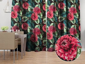 Biante Bavlnený záves Sandra SA-566 Veľké tropické kvety a listy na čiernom 150x190 cm