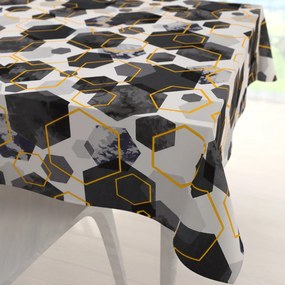 Bavlnený štvorcový dekoračný obrus na stôl so vzorom svetlo sivých, tmavo sivých a tmavo modrofialových hexagónov na bielom podklade. Je ušitý z husto tkaného 100% bavlneného plátna s certifikátom zdravotnej nezávadnosti Oeko-Tex 100. Obrus dodávame kompletne obšitý. Dekoračné obrusy Sandra sú praktickým doplnkom interiéru Vášho domu, bytu, chalupy a sú vhodné aj do hotelov a reštaurácií. Ako správne zvoliť rozmer obrusu? Uvedené rozmery sú rozmery obrusu, nie stola. Bežný doporučený presah obrusu je cca 20-30 cm na každú stranu stola, tzn. ak máte stôl s rozmerom napr. 60x60 cm, objednávajte obrus s rozmerom 100x100 cm až 120x120 cm, vždy však s prihliadnutím na vlastné individuálne požiadavky. Šijeme v našich krajčírskych dielňach v ČR, ponúkame aj rozmery na mieru.
