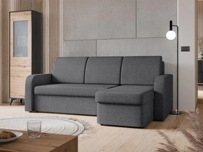 Rozkladacia rohová čalúnená sedacia súprava s úložným priestorom do tvaru L AVESTA pravá sivá