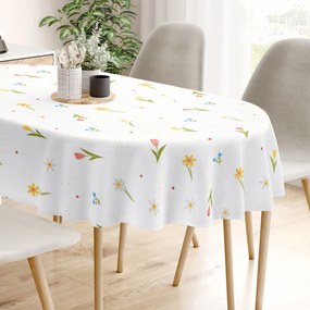 Bavlnený oválny obrus s jarným motívom farebných tulipánov a kvetov na bielom podklade. Je vyrobený z veľmi kvalitnej 100% bavlny (gramáž 145g/m2). Obrus veľmi dobre drží tvar a hodí sa na akýkoľvek oválny stôl. Obrus s motívom farebných tulipánov a kvetov dokonale skrášli Váš interiér. Tento obrus ponúkame vo väčšine štandardných rozmerov. Pokiaľ Vám požadovaný rozmer chýba, zvoľte si variantu "Ušitie na mieru" a zadajte vlastné rozmery. Krajčírky potom obrus ušijú na mieru podľa Vášho želania. Jedná sa o kvalitný český výrobok s kvetinovým motívom, ktorý zakúpite iba v našom internetovom obchode. Aký rozmer obrusu vybrať? Obrus by mal z každej strany presahovať okraj stola aspoň o cca 15 - 20 cm. Pokiaľ máte oválny stôl o rozmere 90 x 130 cm, odporúčame zakúpiť obrus s rozmermi minimálne 120 x 160 cm. Vždy ale záleží, kde budete obrus používať a aký presah Vám bude vyhovovať.