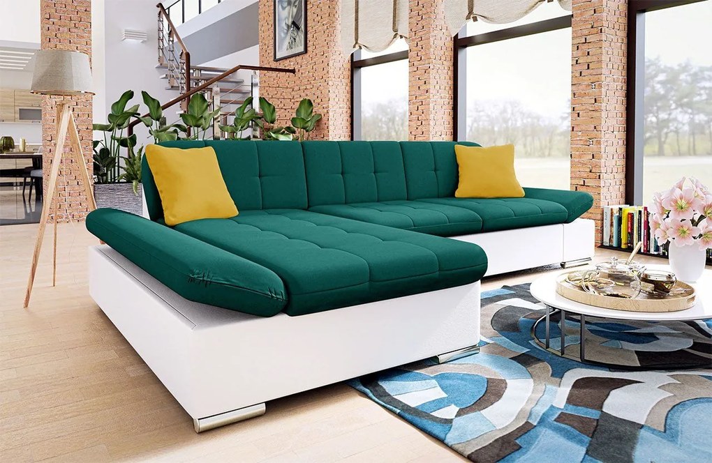Tmavozelená rozkladacia rohová pohovka ZENA, obojstranná