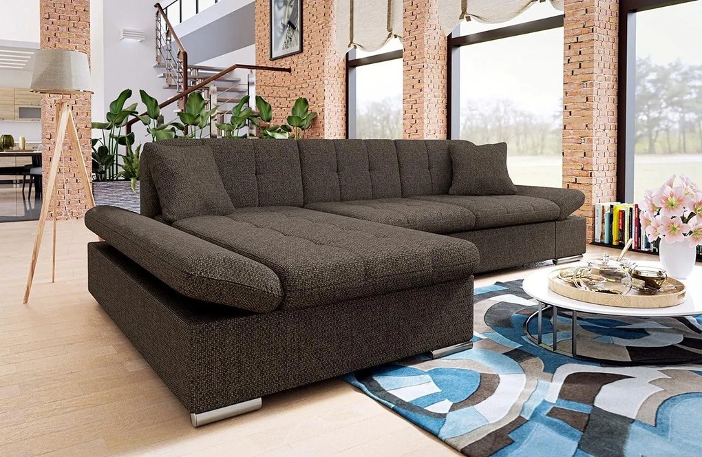 Rohová rozkladacia pohovka Laviva je návrh skupiny čalúneného nábytku do veľkej obývacej izby. Sedačka je v tvare písmena L s rozmermi 278 cm x 161 cm, čo dáva veľa priestoru na posedenie pri káve s priateľmi alebo na ležanie na veľkej ležadle.Rozkladacia rohová sedačka Laviva má jedinečnú funkciu na nastavenie lakťových opierok, čo umožňuje prispôsobiť ju aktuálnym potrebám. Podrúčky môžete umiestniť do vodorovnej polohy a zdvihnúť, aby ste pohodlne položili ruky alebo hlavu.Sedačka Laviva má tiež funkciu na spanie, ktorá vám umožní rozpres na 240x129 cm, vďaka čomu získate pohodlnú plochu na spanie až pre 2 osoby.Rozmery:šírka: 278 cm,hĺbka: 161 cm,výška: 76 cm,plocha na spanie: 240 x 129 cmRozmery úložného priestoru:Dĺžka: 147 cmŠírka: 73 cmVýška: 23 cmOrientácia: ľavá alebo praváMateriál:drevený rám + drevotrieska,polyuretánová pena + vlnová pružina,rozkladacia,funkcia spania,úložný priestor na posteľnú bielizeň,vankúše v cene,vankúše na zips,chrómované plastové nohy,voľne stojaci roh (zadná strana potiahnutá látkou),nastavenie lakťovej opierkyZáruka: 24 mesiacov