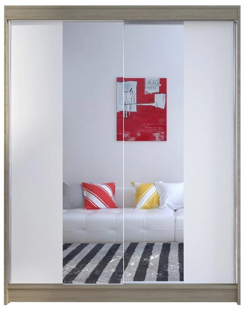 Skriňa s posuvnými dverami Belgia II, Farby: biela / sonoma + zrkadlo, Osvetlenie: bez osvetlenia