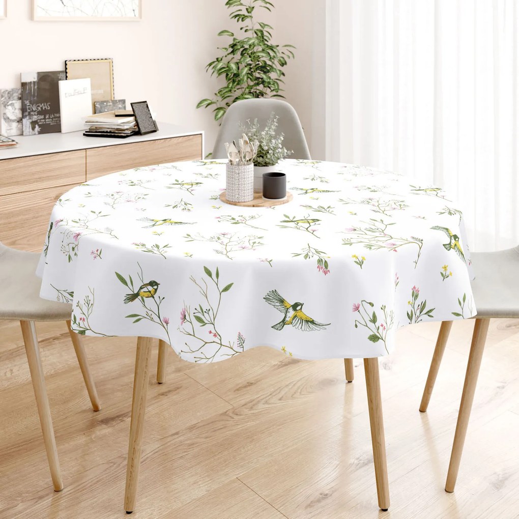 Bavlnený okrúhly obrus s jarným motívom lúčneho kvetu a sýkoriek na bielom podklade. Je vyrobený z veľmi kvalitnej 100% bavlny (gramáž 145g/m2). Obrus veľmi dobre drží tvar a hodí sa na akýkoľvek okrúhly stôl. Obrus s motívom lúčneho kvetu a sýkoriek dokonale skrášlia Váš interiér. Tento obrus na okrúhle stoly ponúkame vo väčšine štandardných priemerov (uvedené rozmery sú rozmery obrusu, nie stola). Pokiaľ Vám požadovaný priemer chýba, zvoľte si variantu "Ušitie na mieru" a zadajte vlastný priemer. Krajčírky potom obrus ušijú na mieru podľa Vášho želania. Jedná sa o kvalitný český výrobok s kvetinovým motívom, ktorý zakúpite iba v našom internetovom obchode. Aký rozmer obrusu vybrať? Obrus by mal z každej strany presahovať okraj stola aspoň o cca 15 - 20 cm. Pokiaľ máte okrúhly stôl o priemere 90 cm, odporúčame zakúpiť obrus aspoň o priemere 120 - 130 cm. Vždy ale záleží, kde budete obrus používať a aký presah Vám bude vyhovovať.